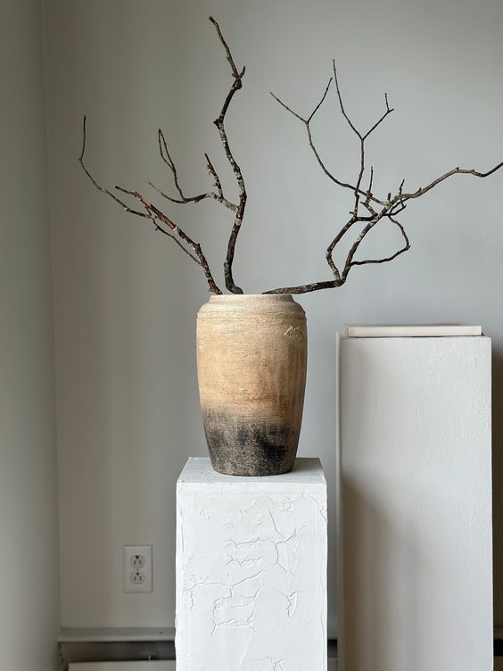 Next, incorporate vases and candle holders in earthy, muted tones. Stoneware or ceramic pieces with matte finishes give off a sense of natural simplicity. Fill vases with dried grasses, wheat stalks, or even branches from your garden. The rough, organic textures contrast beautifully with the soft glow of flickering candlelight, creating a cozy, intimate ambiance.